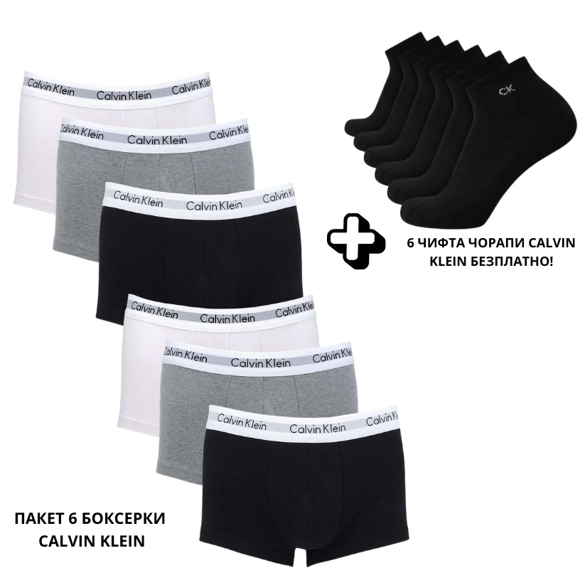 Пакет от 6 боксерки Calvin Klein + 6 чифта чорапи CK БЕЗПЛАТНО!